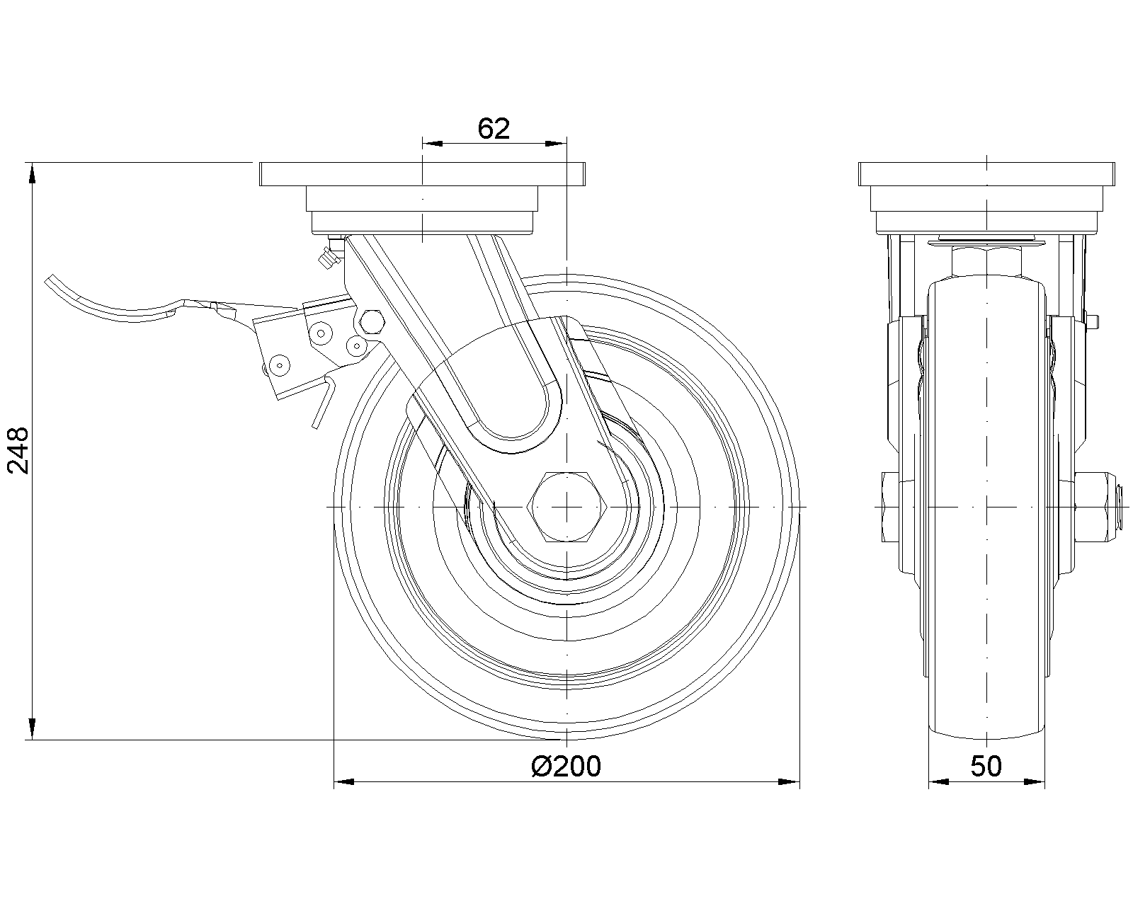 Wheel tread: Thermoplastic (PA6) Wheel Center: Thermoplastic (PA6) Drawings are for reference only and may differ from the product |