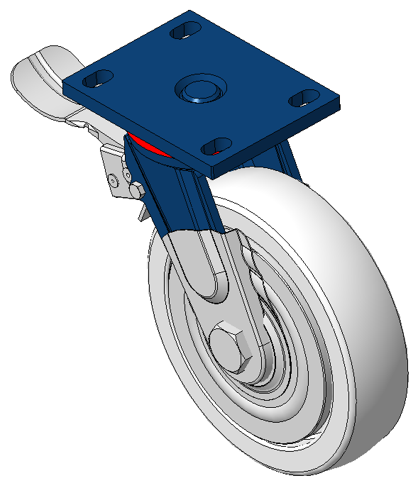 Casters with rear brake and With locking system, Welded Caster Fork Blue-painted finish, Mounting Type - Top Plate, 110x75 Bolt Hole Spacing Reinforced Polypropylene Wheel Center, natural Wheel Tread Bearings—Ball Bearings with special Anti-thread wheel cover |