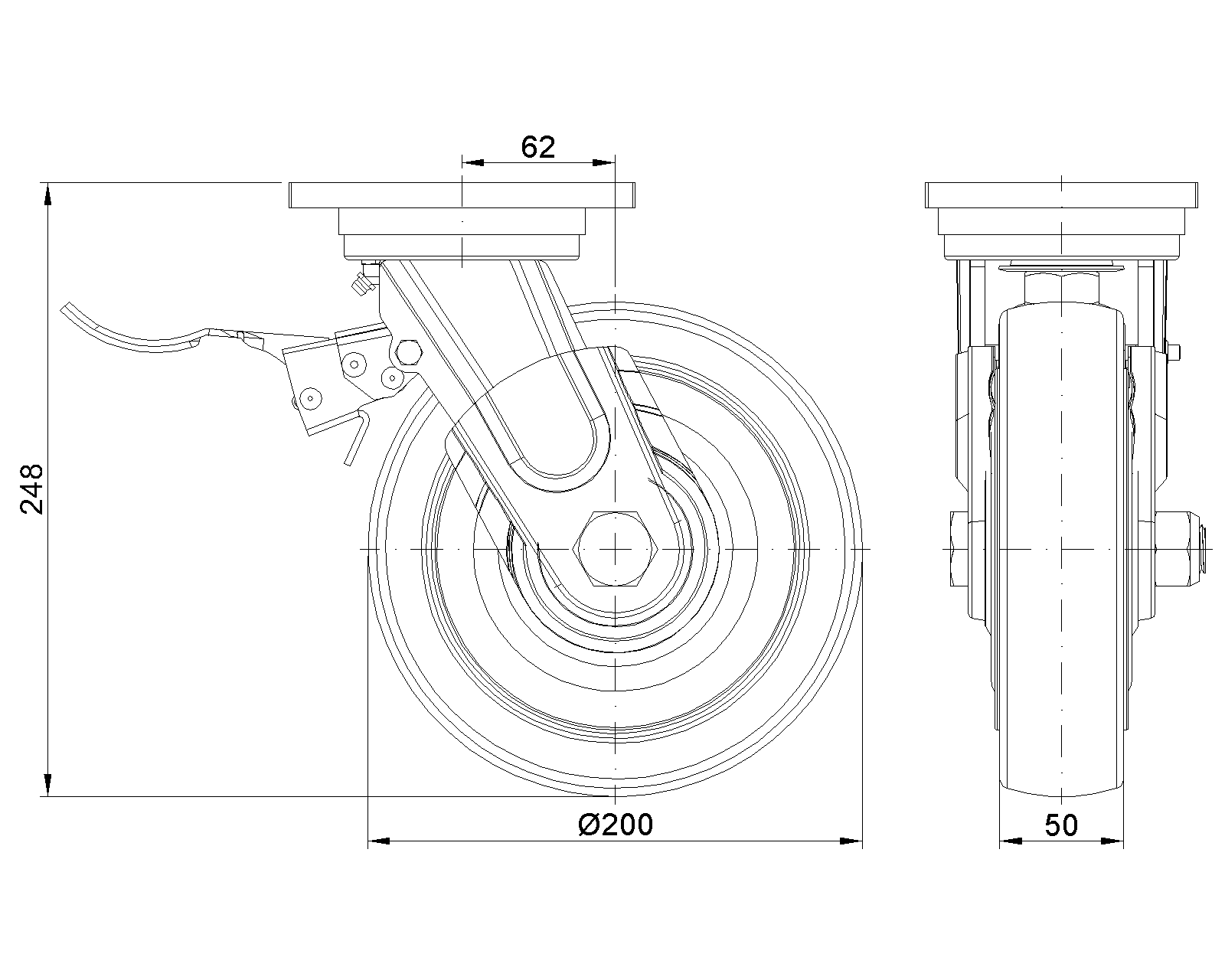 Wheel tread: Thermoplastic (PA6) Wheel Center: Thermoplastic (PA6) Drawings are for reference only and may differ from the product |