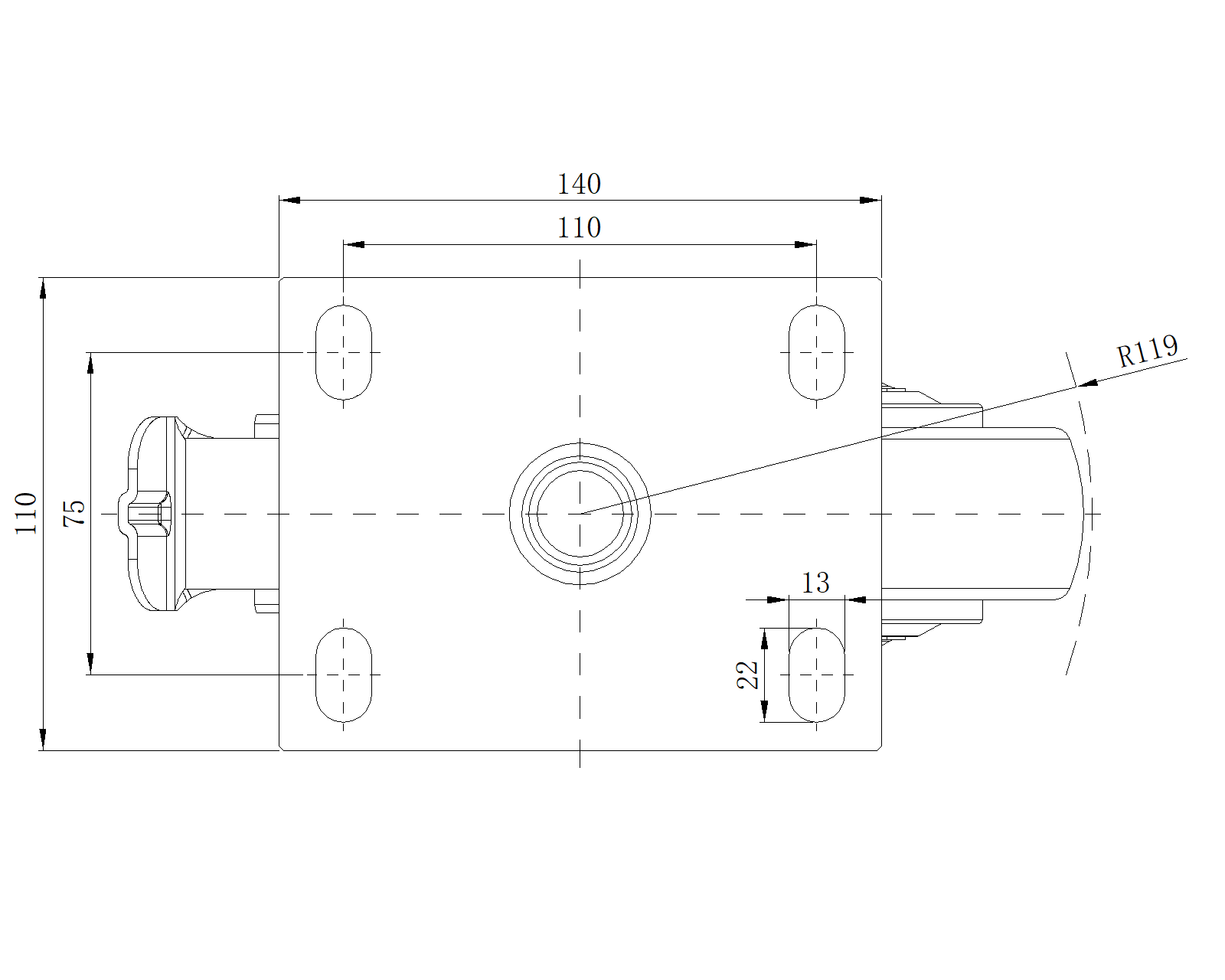 Rear Brake Locking system, Welded Caster Fork Blue-painted finish, Mounting Type - Top Plate, 110x75 Bolt Hole Spacing Natural thermoplastic Wheel Center and tread Precision ball bearings with special Anti-thread wheel cover |