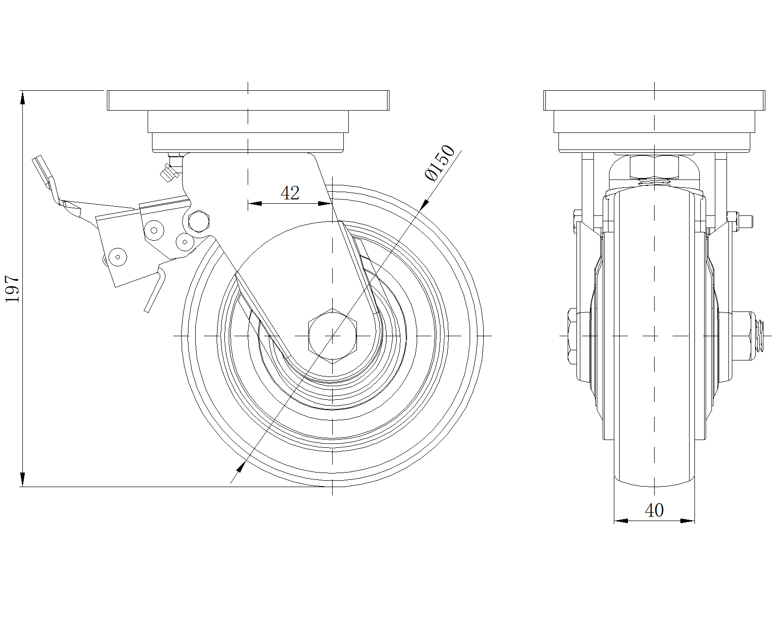Wheel tread: Thermoplastic (PA6) Wheel Center: Thermoplastic (PA6) Drawings are for reference only and may differ from the product |