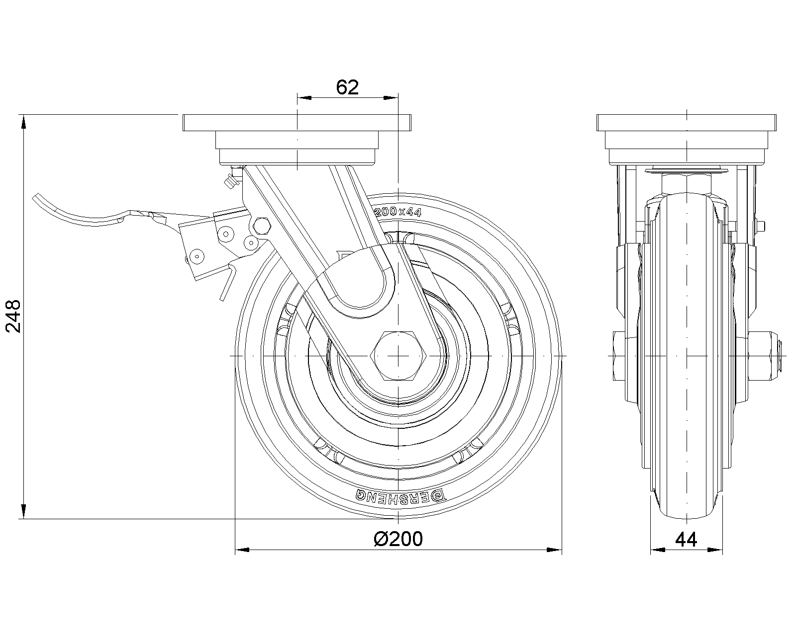 Non-marking NBR Rubber (milling) Wheel Diameter x Wheel Width 200 x 44mm |