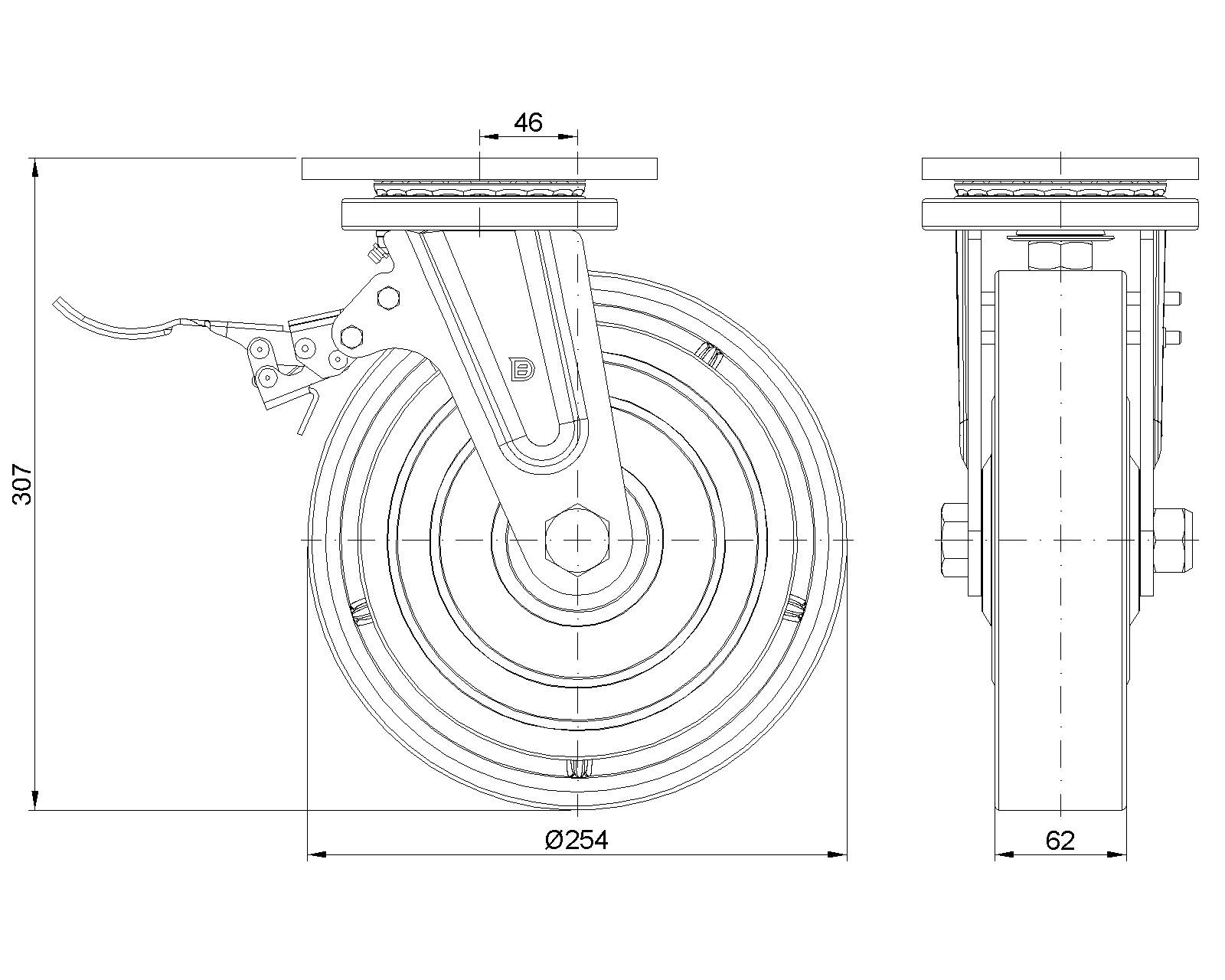 Wheel tread: Made of high-quality polyurethane Wheel Center: iron core/cast iron core Drawings are for reference only and may differ from the product |