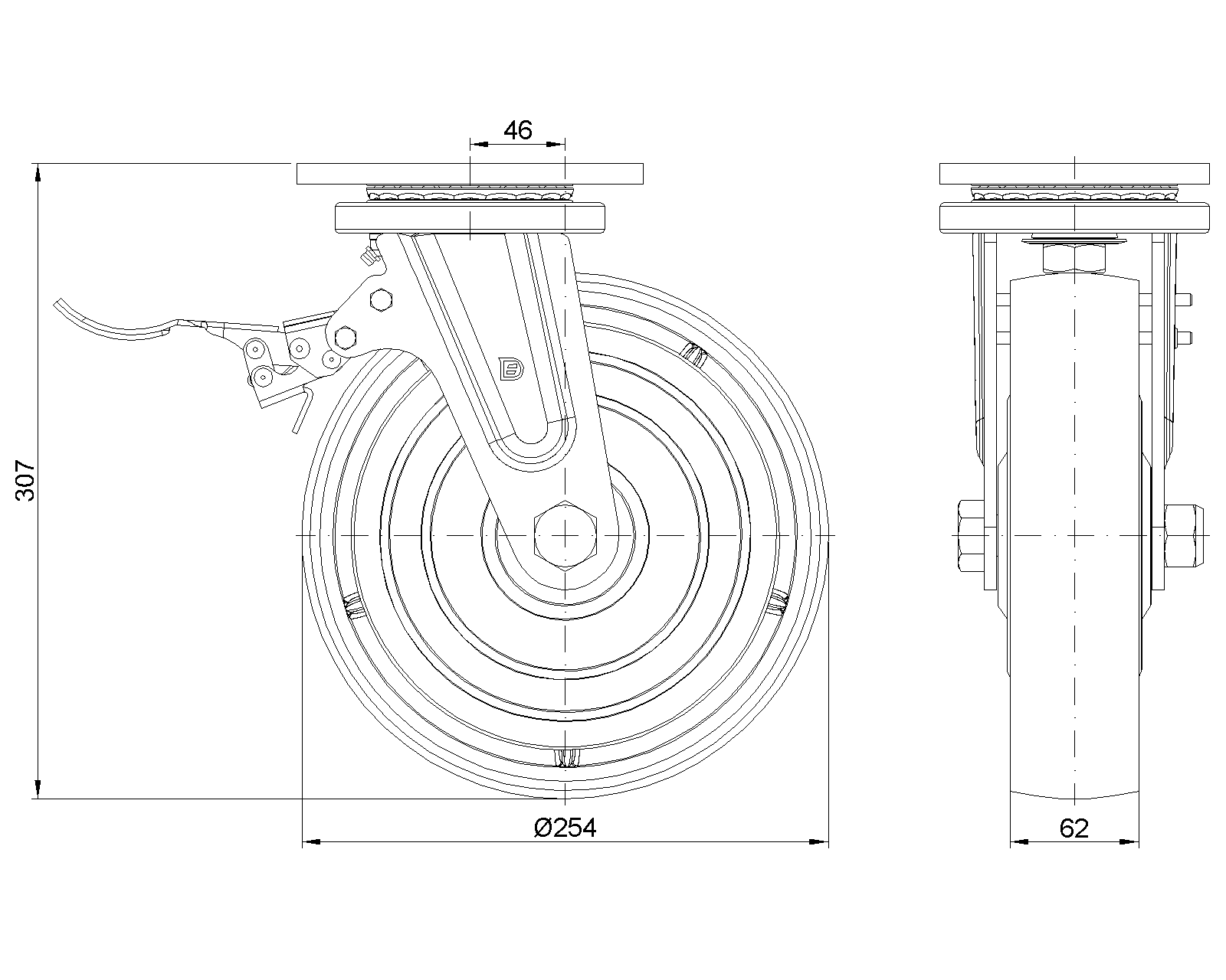 Wheel tread: Made of high-quality polyurethane Wheel Center: iron core/cast iron core Drawings are for reference only and may differ from the product |