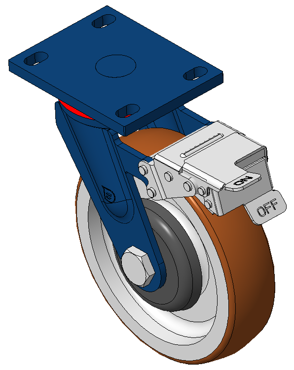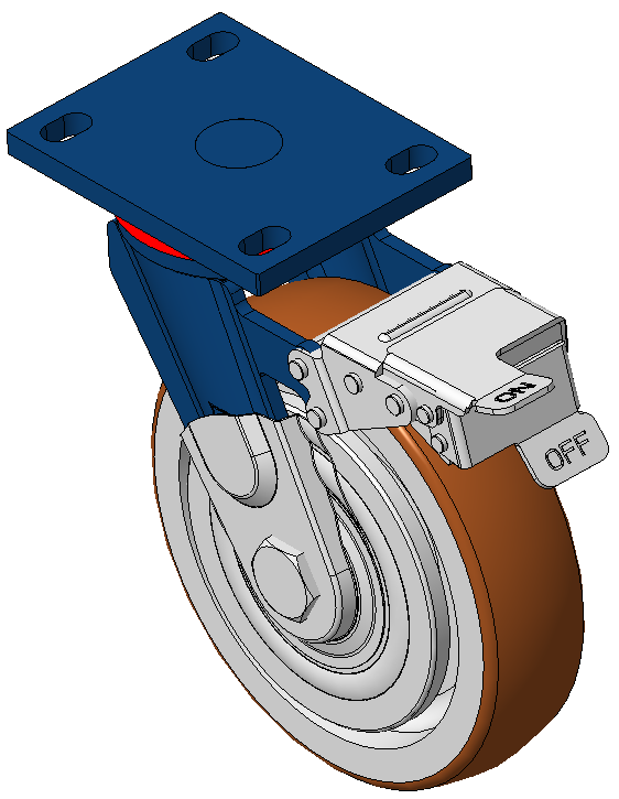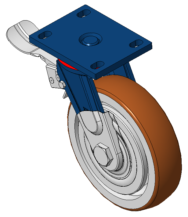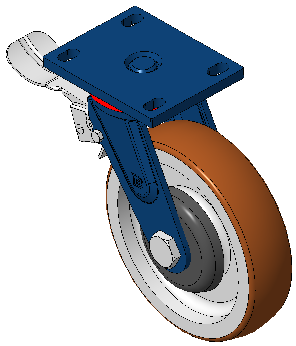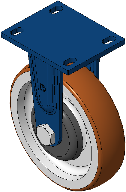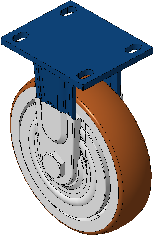 Rigid Caster with Welded Caster Fork Blue painted finish, Mounting Type - Top Plate, 110x75 Bolt Hole Spacing Cast Iron core with High Quality Polyurethane Wheel Tread, Cast Iron brown Bearings – Ball Bearings |