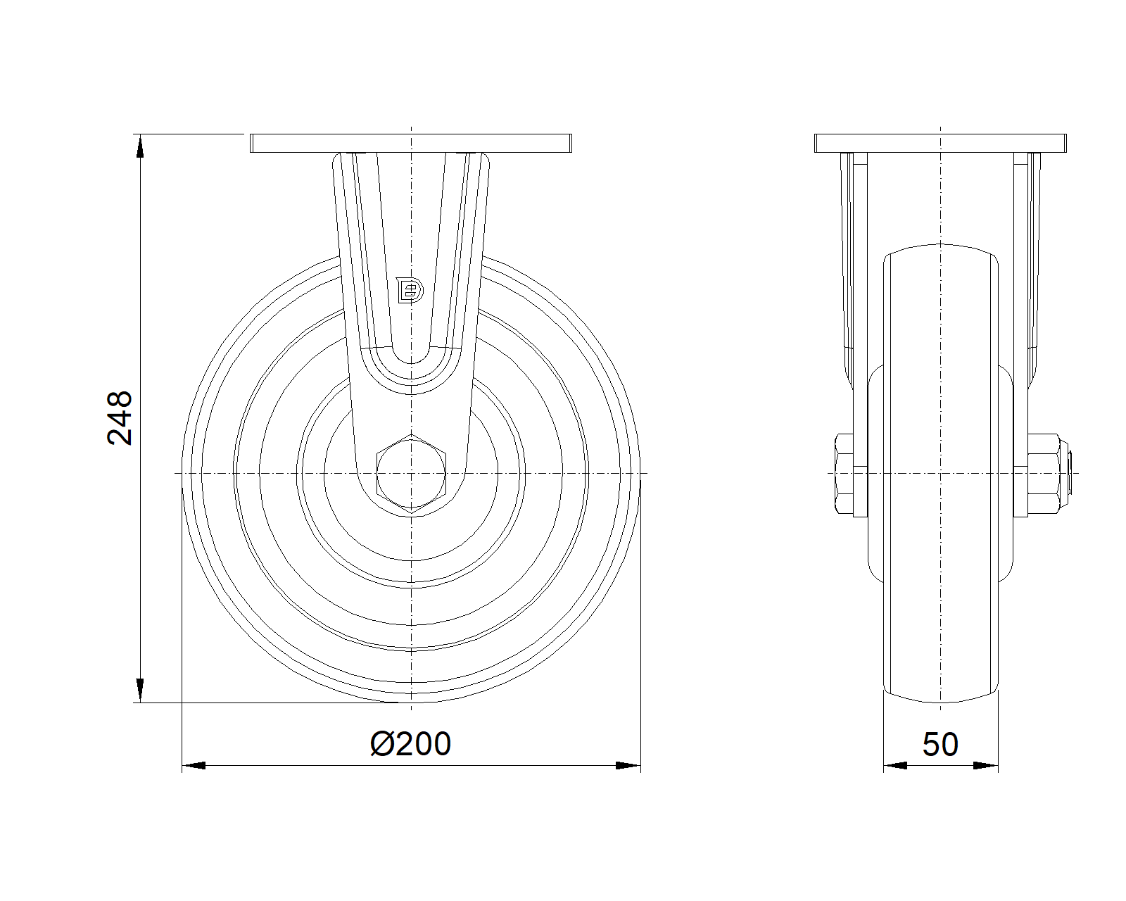 VQPU (brown round) Wheel Diameter x Wheel Width 200 x 50mm |
