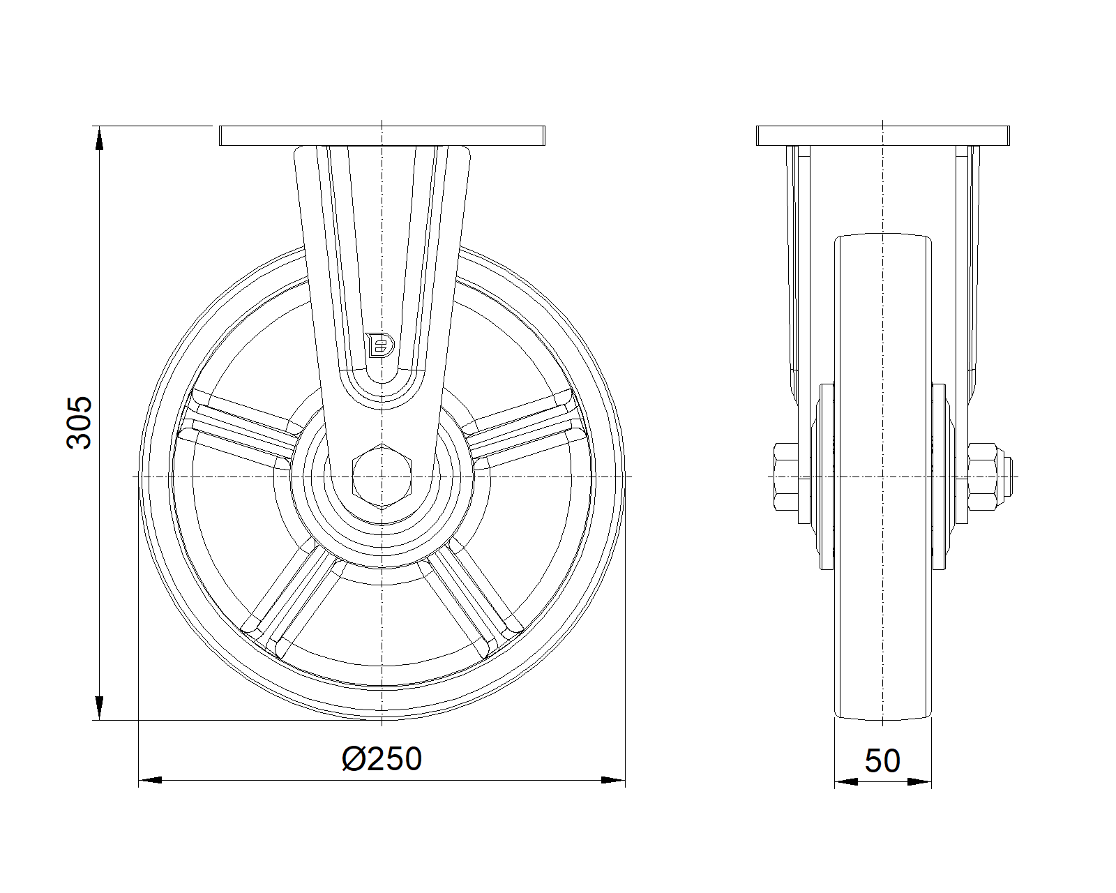 Wheel tread: Thermoplastic (PA6) Wheel Center: Thermoplastic (PA6) Drawings are for reference only and may differ from the product |