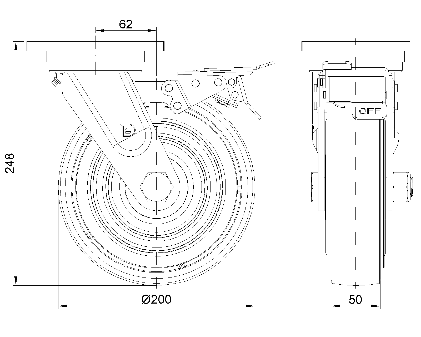 Wheel tread: Made of high-quality polyurethane Wheel Center: iron core/cast iron core Drawings are for reference only and may differ from the product |