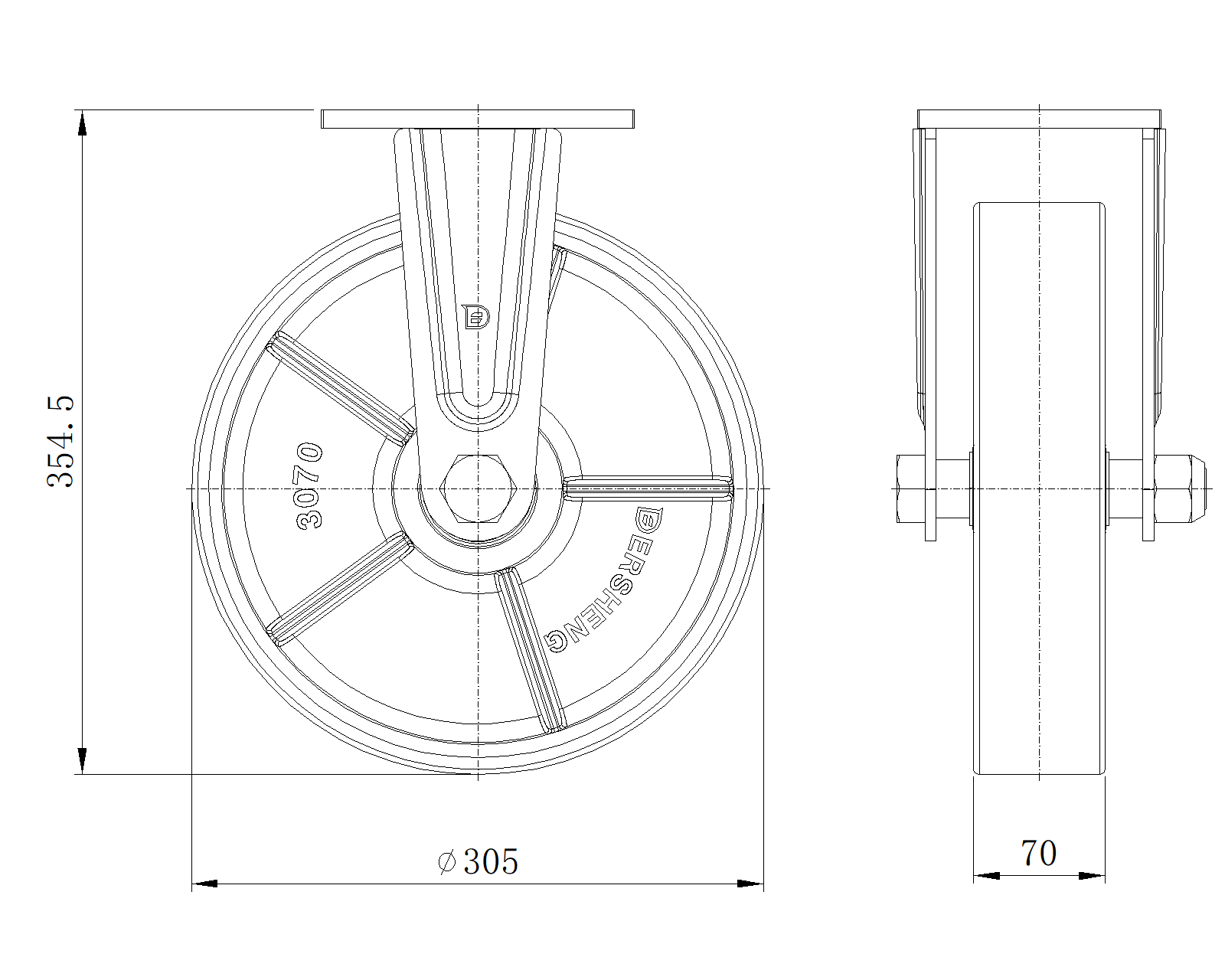 Wheel tread: Made of high-quality polyurethane Wheel Center: iron core/cast iron core Drawings are for reference only and may differ from the product |