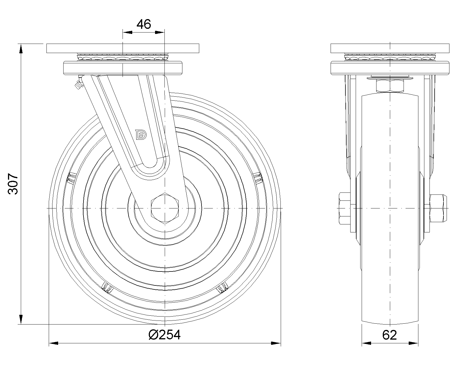 Wheel tread: Made of high-quality polyurethane Wheel Center: iron core/cast iron core Drawings are for reference only and may differ from the product |