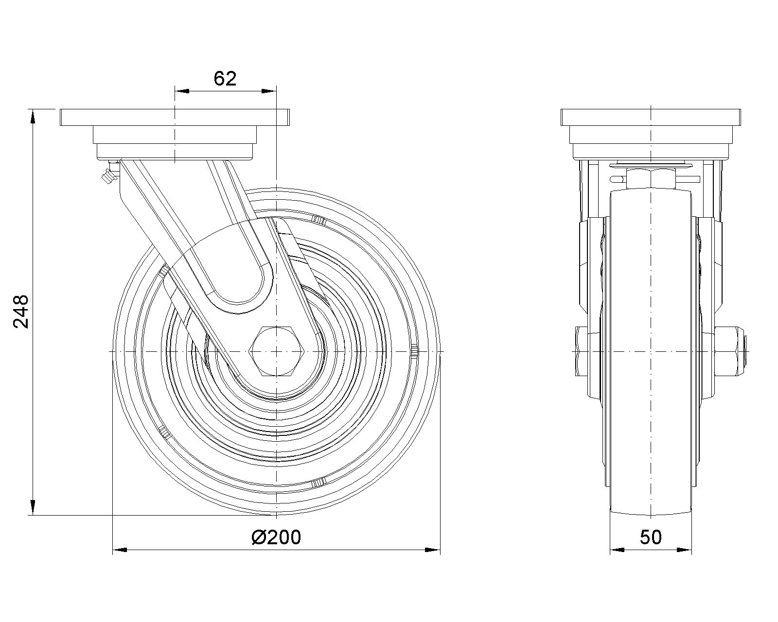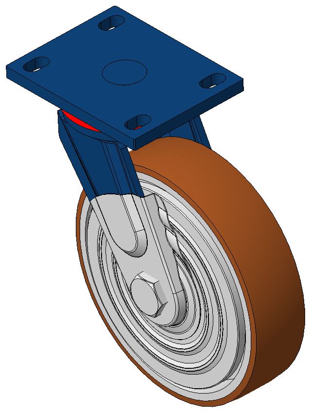Mounting Type - Top Plate, 110x75 Bolt Hole Spacing. Cast Iron core with High Quality Polyurethane Wheel Tread, Cast Iron brown. Bearings—Ball Bearings with special Anti-thread wheel cover. |