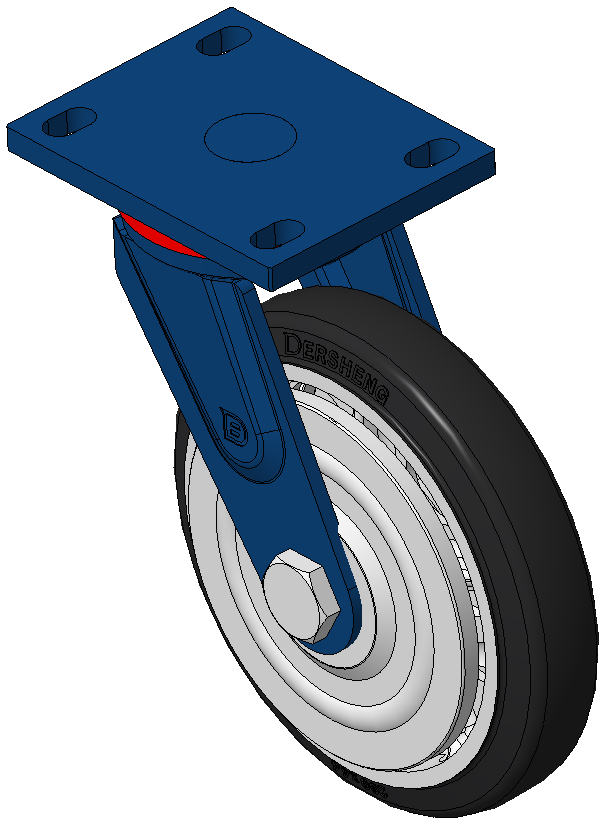 Swivel Caster, Welded Caster Fork Surface sprayed with blue paint, Mounting Type - Top Plate, Hole spacing 110x75 Cast Iron Wheel Center, High-Quality high-Resilient Rubber Wheel Tread, Cast Iron black Bearing-Ball Bearing |