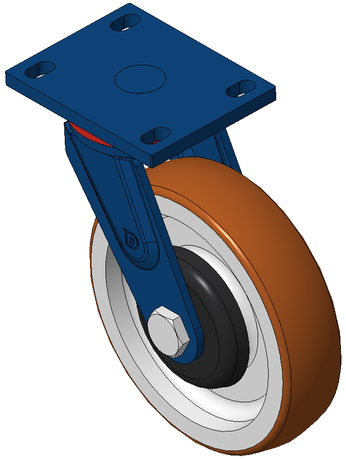 Swivel Casters, Welded Caster Fork Surface spray blue paint, Top Plate installation device, Hole spacing 110x75 Wheel core made of cast iron, high quality polyurethane Wheel Tread, Cast Iron brown Bearing—Ball Bearing |