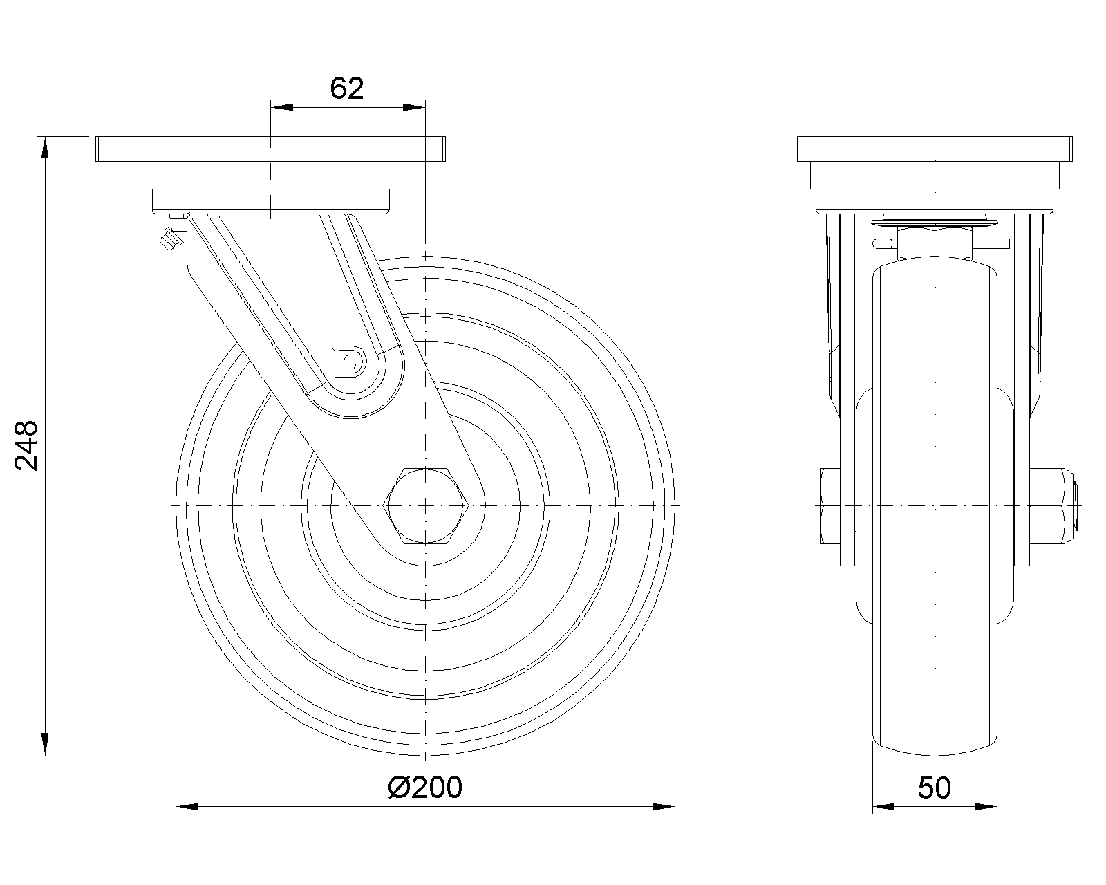 VQPU (brown round) Wheel Diameter x Wheel Width 200 x 50mm |