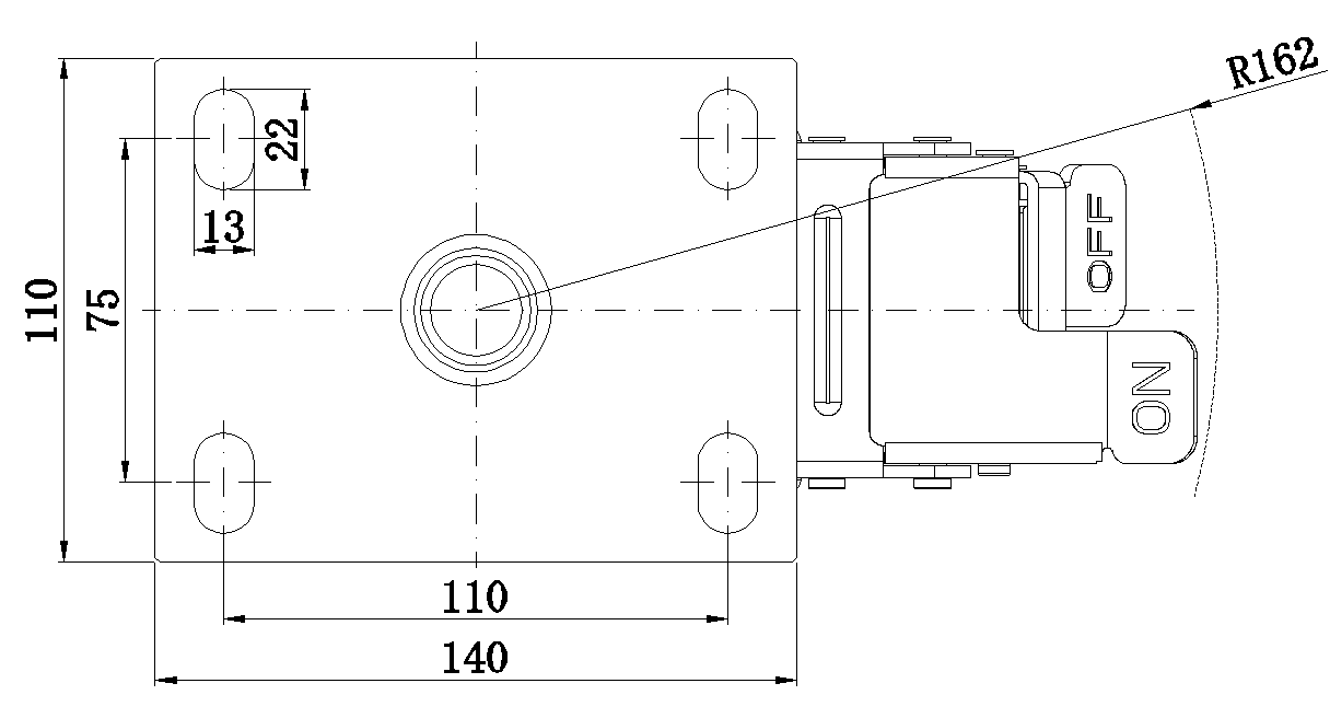 Casters with Front Brake locking system, Welded Caster Fork Blue-painted finish, Mounting Type - Top Plate, 110x75 Bolt Hole Spacing Polypropylene Wheel Center and tread, Natural Color Bearing—Ball Bearing with special Anti-thread wheel cover |