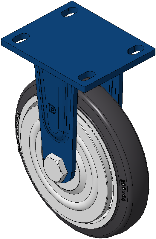 Rigid Caster with Welded Caster Fork Blue painted finish, Mounting Type - Top Plate, 110x75 Bolt Hole Spacing Cast Iron core with High-Quality, highly Resilient Rubber Wheel Tread, Cast Iron black Bearings: Ball Bearing bearings |