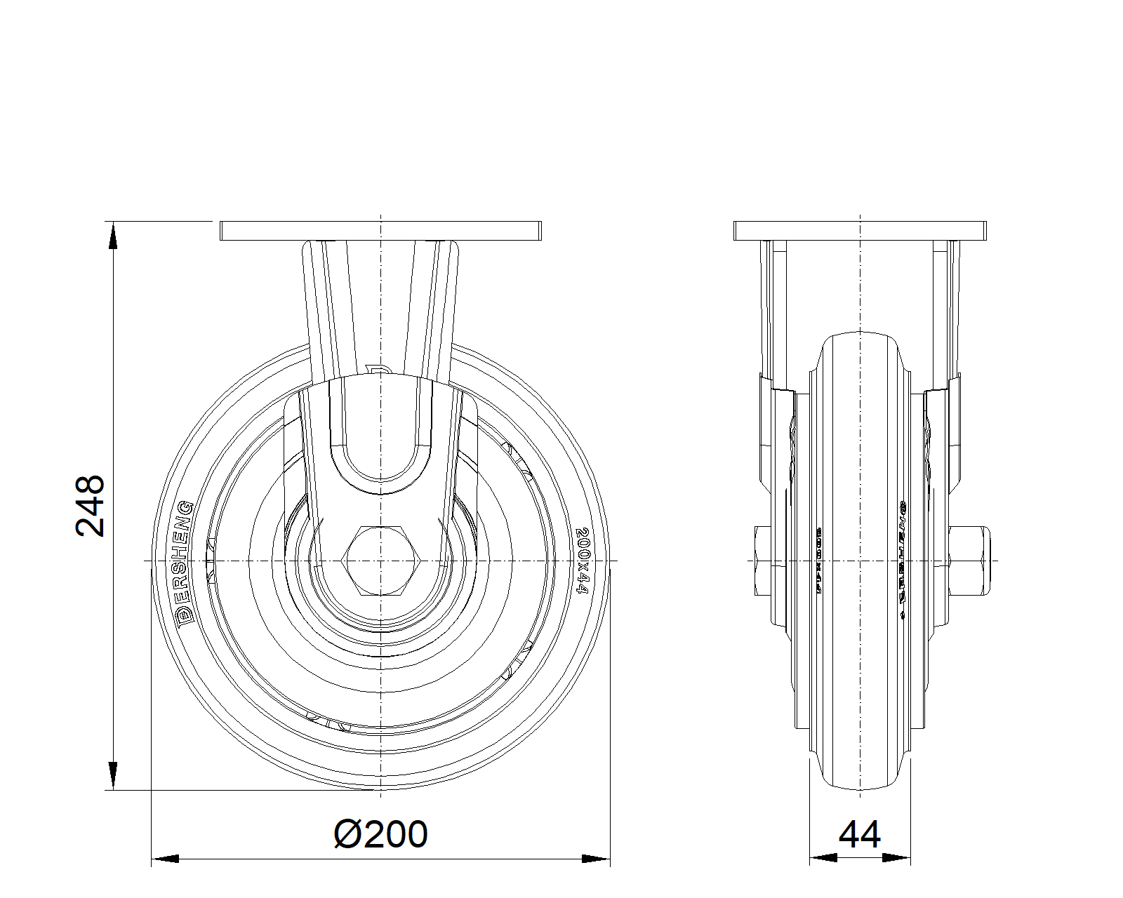 Non-marking NBR Rubber (milling) Wheel Diameter x Wheel Width 200 x 44mm |