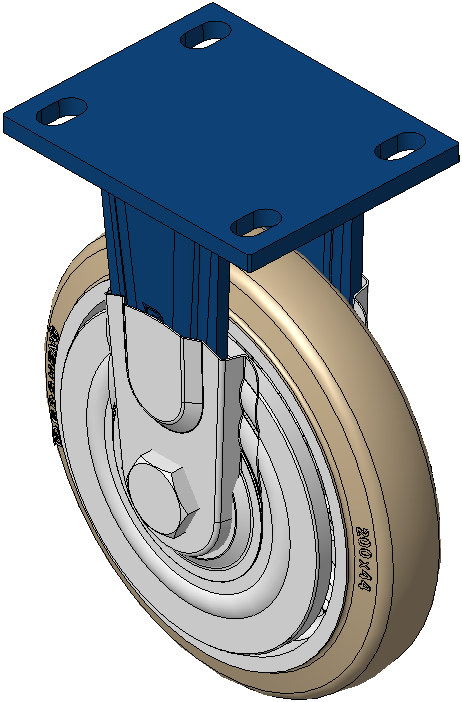 Rigid Caster with Welded Caster Fork Blue-painted finish, Mounting Type - Top Plate, 110x75 Bolt Hole Spacing Cast Iron core with High-Quality, highly Resilient Rubber Wheel Tread, Cast Iron in natural color Bearings—Ball Bearings with special Anti-thread wheel cover |
