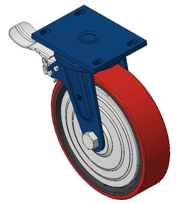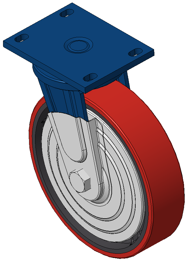 Mounting Type - Top Plate, 140x85 Bolt Hole Spacing. Cast Iron Wheel Center with High Quality Polyurethane Wheel Tread, Cast Iron red. Bearings—Ball Bearings. |