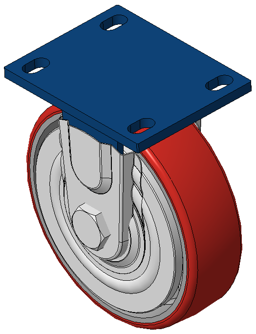 固定式的腳輪,焊接鋼板架 表面藍漆,底板式安裝,孔距110x75 鐵製輪芯,高品質高彈性橡膠輪面,銑紅色 輪子軸承—精密滾珠,配特製防纏繞輪蓋 |