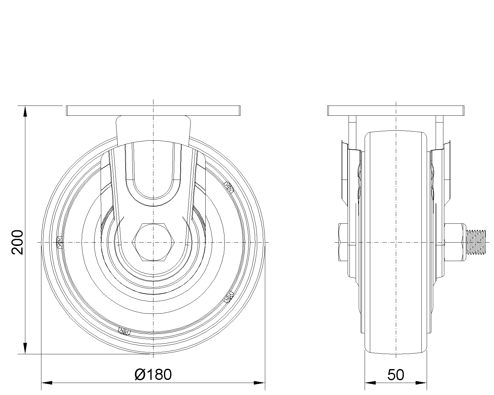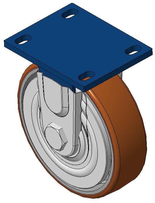 固定式的腳輪,焊接鋼板架 表面藍漆,底板式安裝,孔距110x75 鐵製輪芯,高品質高彈性橡膠輪面,銑褐色 輪子軸承—精密滾珠,配特製防纏繞輪蓋 |