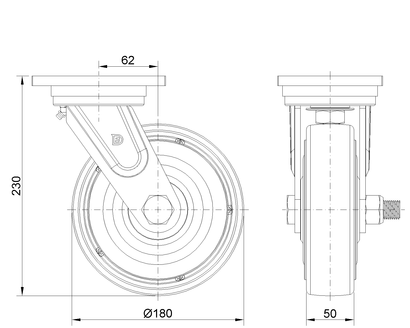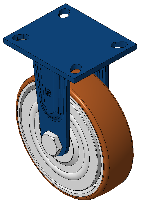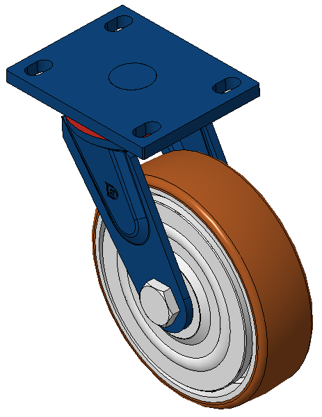 活動式的腳輪,焊接鋼板架 表面藍漆,底板式安裝,孔距110x75 鐵製輪芯,高品質高彈性橡膠輪面,銑褐色 輪子軸承—精密滾珠,配特製防塵蓋 |