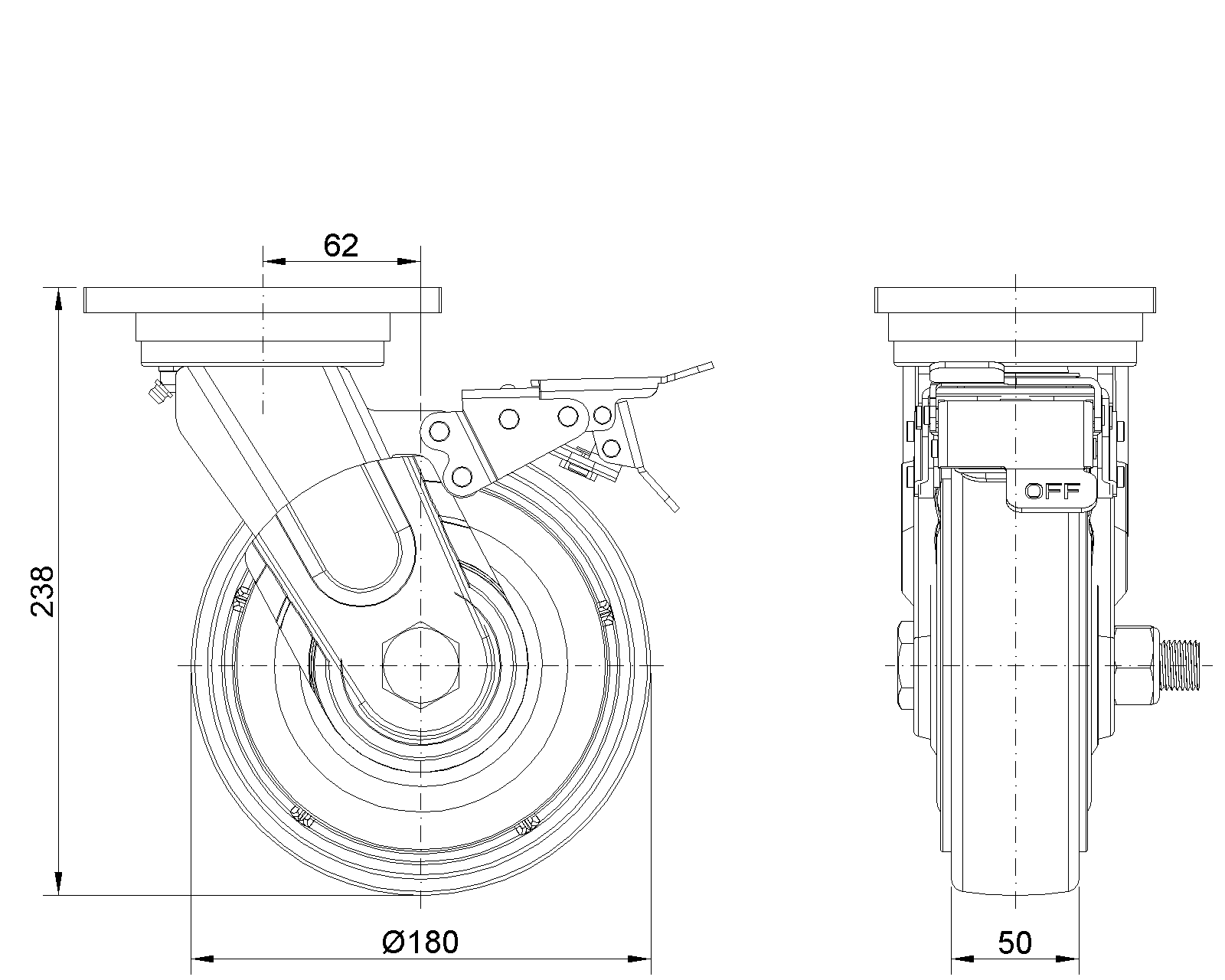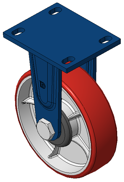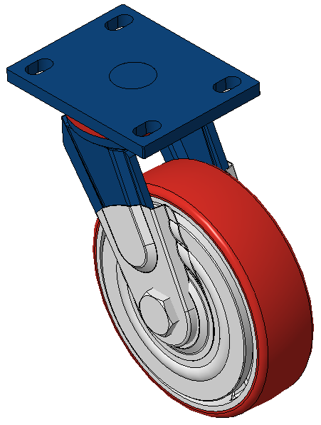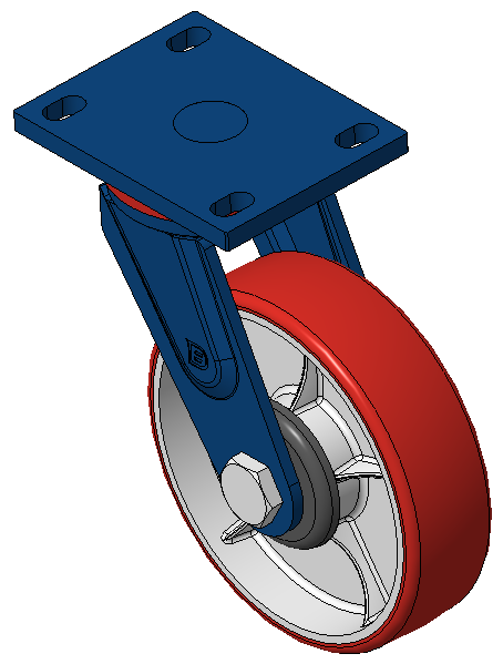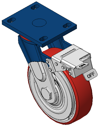 前煞車式的腳輪,焊接鋼板架 表面藍漆,底板式安裝,孔距110x75 鐵製輪芯,高品質高彈性橡膠輪面,銑紅色 輪子軸承—精密滾珠,配特製防纏繞蓋 |