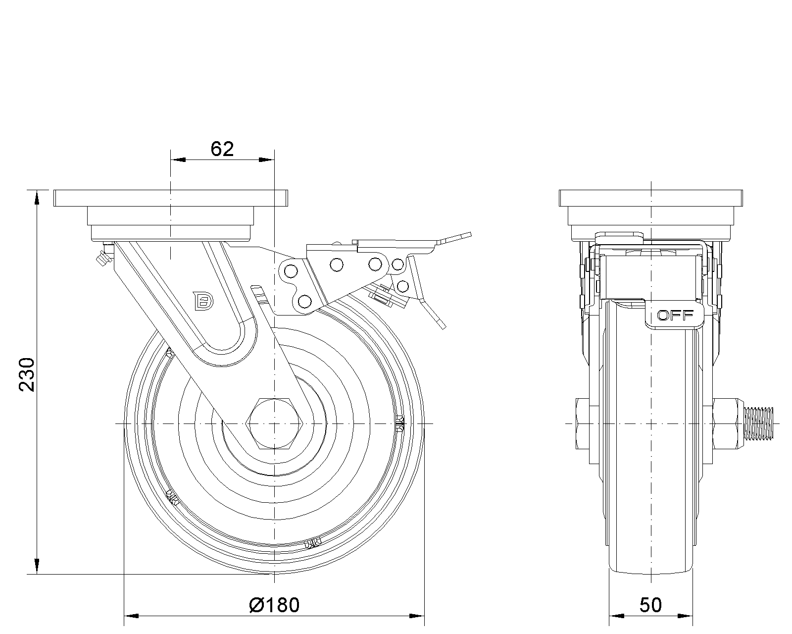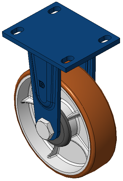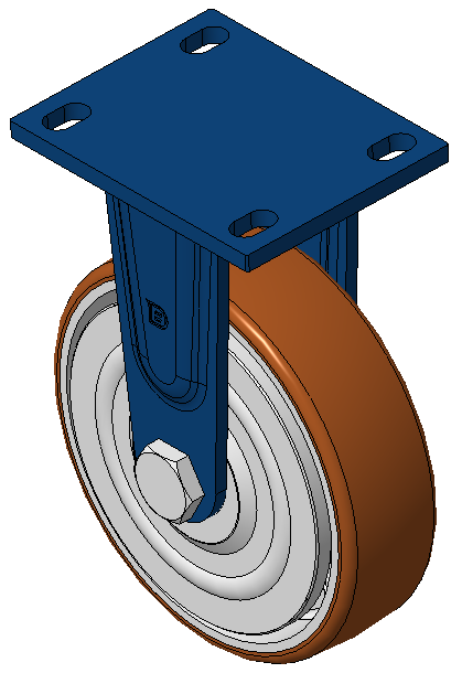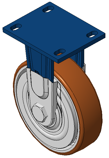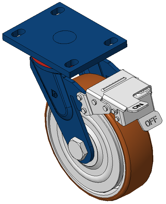 前煞車式的腳輪,焊接鋼板架 表面藍漆,底板式安裝,孔距110x75 鐵製輪芯,高品質高彈性橡膠輪面,銑褐色 輪子軸承—精密滾珠,配特製防塵蓋 |