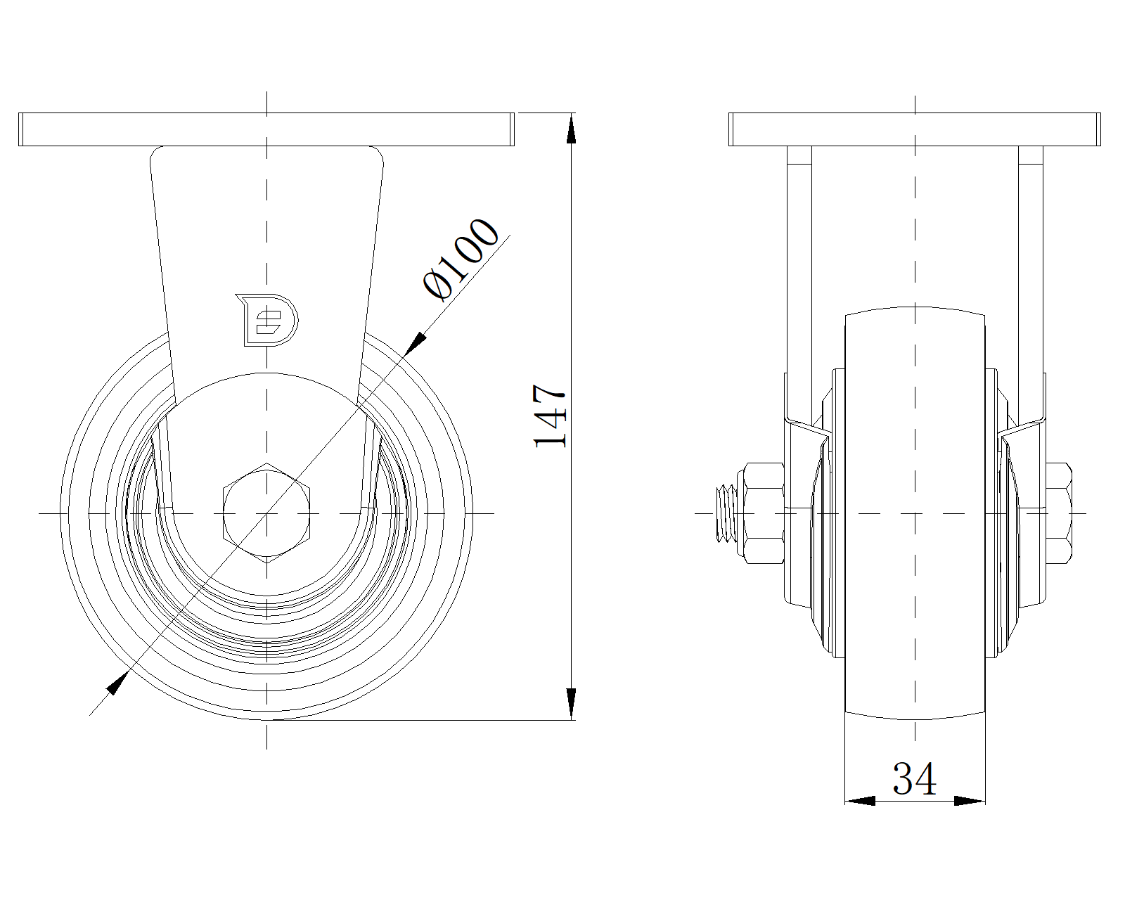 Bánh xe cố định, khung thép hàn - Khoảng cách lỗ 90x60