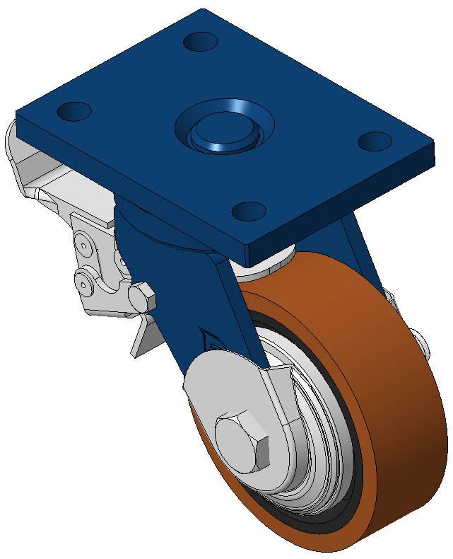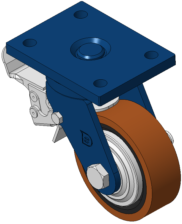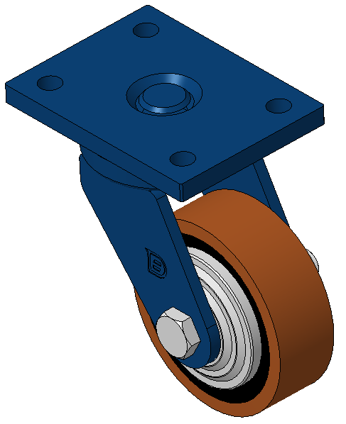 Hoàn thiện sơn màu xanh, lắp đế, khoảng cách lỗ 90x60 Lõi gang, gai polyurethane chất lượng cao, màu nâu phay Vòng bi bánh xe—vòng bi cầu chính xác |