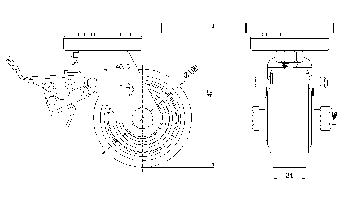 ![]() đơn vị mét đế quốc Đường kính bánh xe 100mm Chiều rộng bánh xe 34mm |