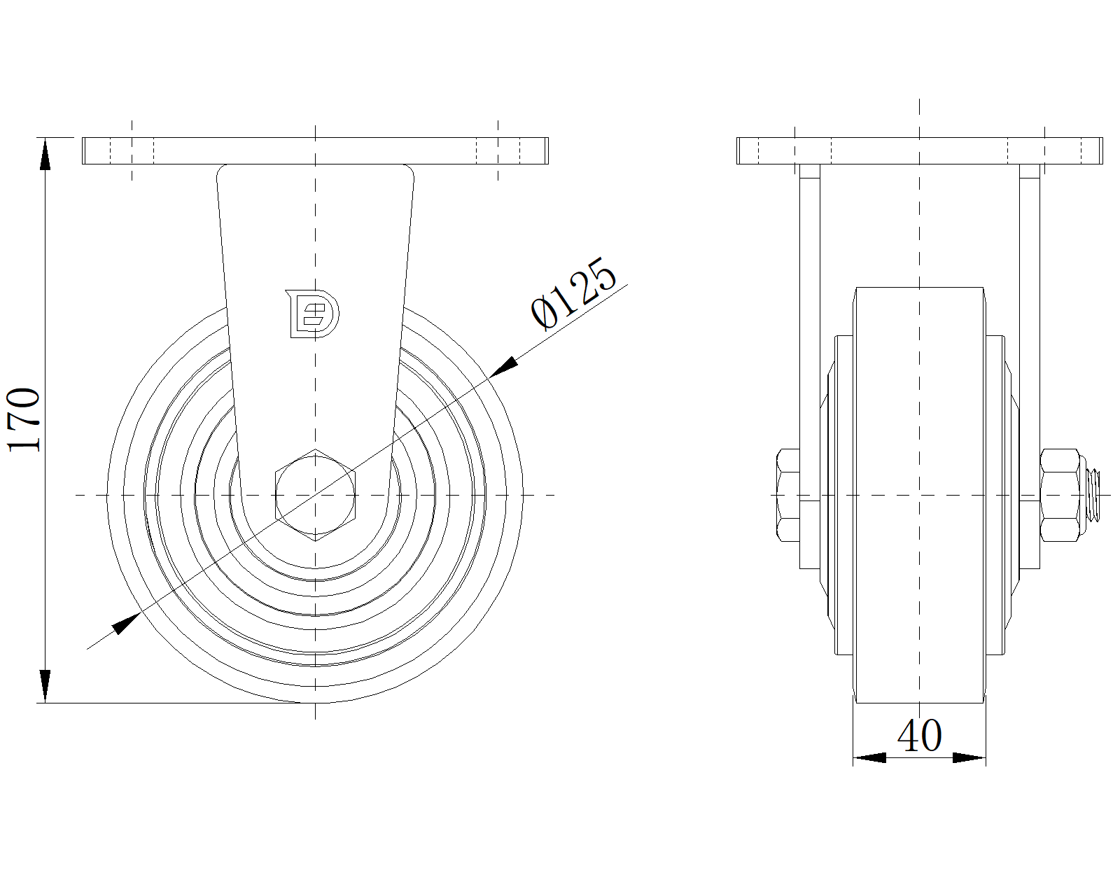 ![]() đơn vị mét đế quốc Đường kính bánh xe 125mm Chiều rộng bánh xe 40mm |