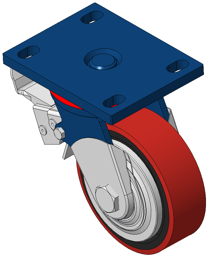 Hoàn thiện sơn màu xanh, lắp đế Lõi gang, mặt lốp polyurethane chất lượng cao Hoàn thiện phay màu đỏ, ổ trục bánh xe - ổ trục bi chính xác |