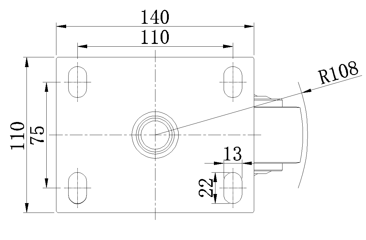 Quy cách tấm lắp 140 x 110mm khoảng cách các lỗ trên tấm nền 110x75mm Khoảng cách các lỗ lắp 22 x 13mm Độ lệch tâm 42mm Sự can thiệp quay 216mm Tổng chiều cao 170mm Bán kính xoay 108mm Độ cứng 93±5° Shore A Tải trọng (động) 340kgs |