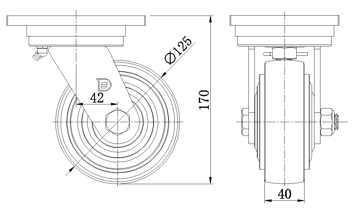 ![]() đơn vị mét đế quốc Đường kính bánh xe 125mm Chiều rộng bánh xe 40mm |