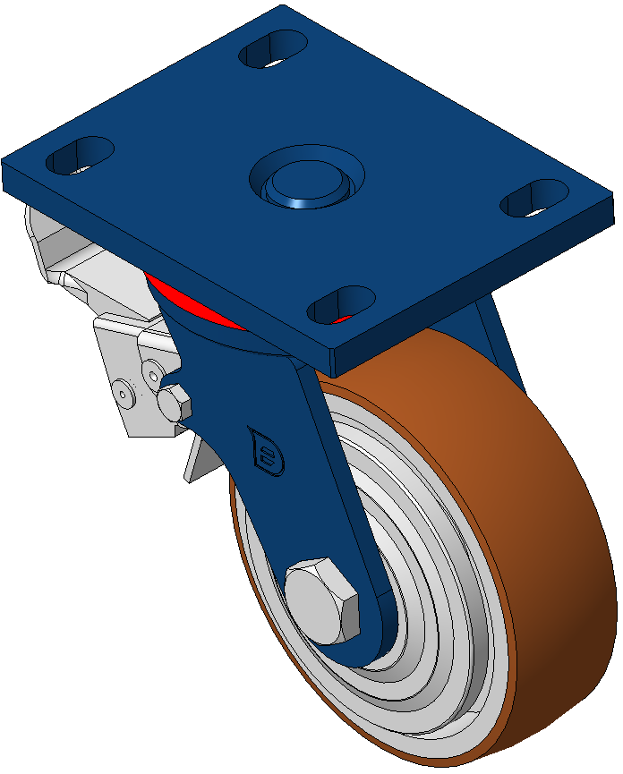 Hoàn thiện sơn màu xanh, lắp đế Lõi gang, gai polyurethane chất lượng cao, phay màu nâu Vòng bi bánh xe - vòng bi chính xác với nắp chống quấn đặc biệt |