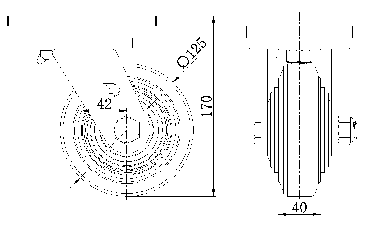![]() đơn vị mét đế quốc Đường kính bánh xe 125mm Chiều rộng bánh xe 40mm |