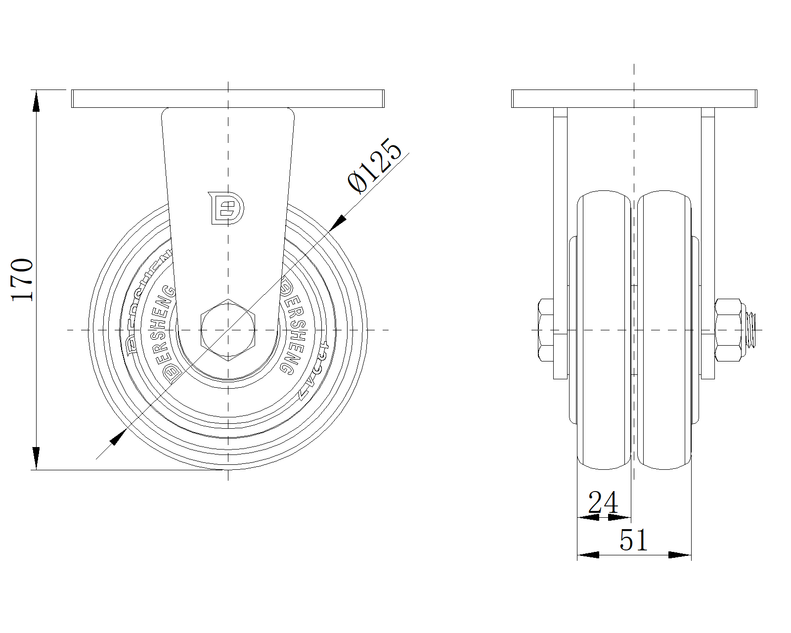 Bánh xe ZQPU (hồ quang nâu) Đường kính bánh xe × Chiều rộng bánh xe 125 x 24 (51) mm |