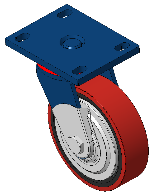 Hoàn thiện sơn màu xanh, lắp đế Lõi gang, gai polyurethane chất lượng cao, phay màu đỏ Vòng bi bánh xe - vòng bi chính xác với nắp chống quấn đặc biệt |