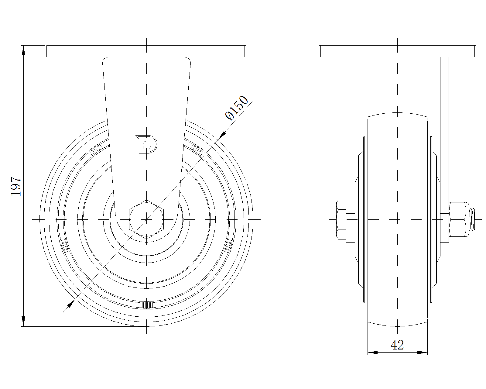 Bánh xe QPU (Màu nâu vòng cung) đường kính bánh xe × chiều rộng bánh xe 150 x 42mm |