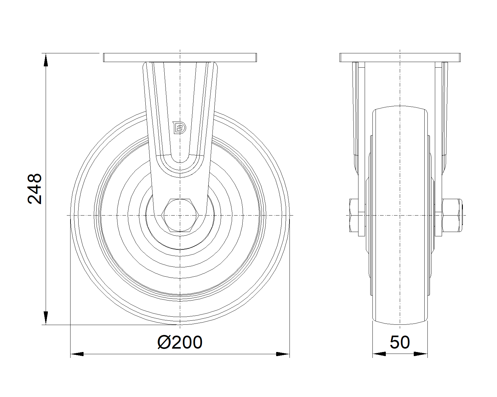 Đường kính bánh xe CPD × Chiều rộng bánh xe 200 x 50mm |