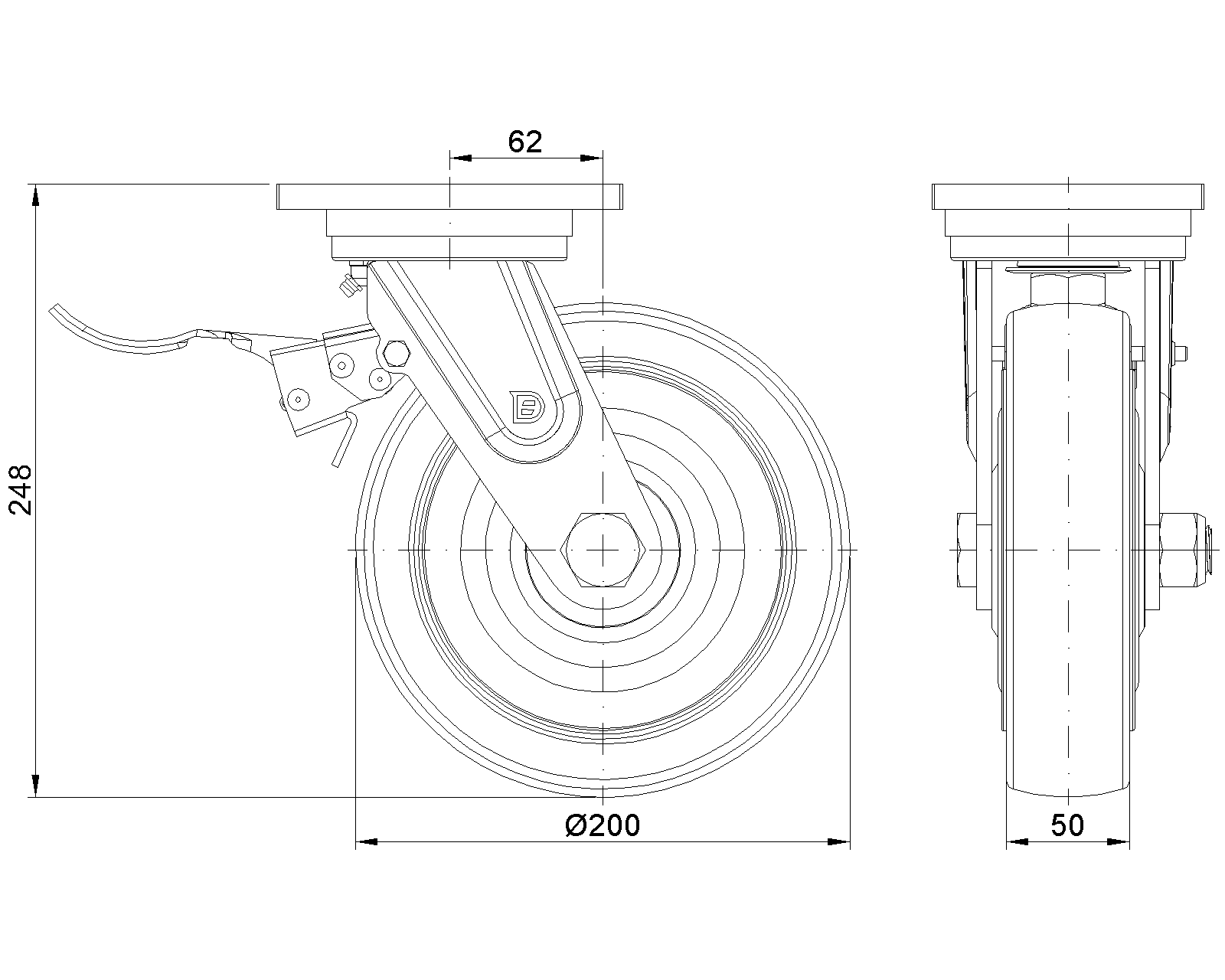Bánh xe MRC (trong suốt) Đường kính bánh xe × Chiều rộng bánh xe 200 x 50mm |