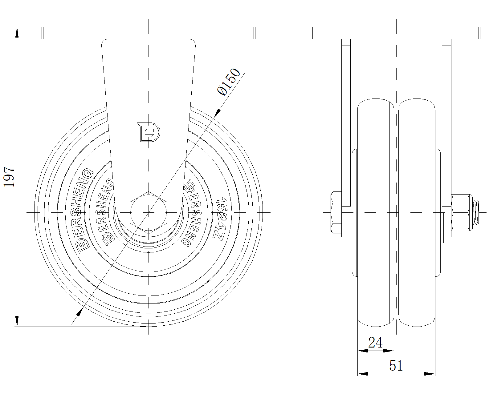 Bánh xe ZQPU (hồ quang nâu) Đường kính bánh xe × Chiều rộng bánh xe 150 x 24 (51) mm |