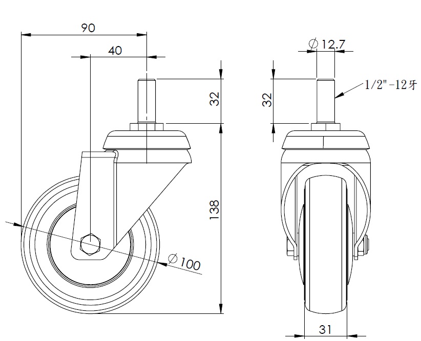 PPR (S) Wheel Diameter × Wheel Width 100 x 31mm |