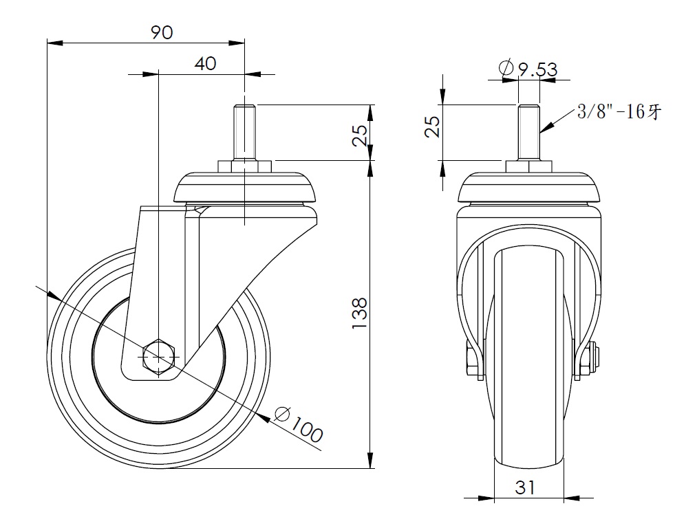 PPR (S) Wheel Diameter × Wheel Width 100 x 31mm |