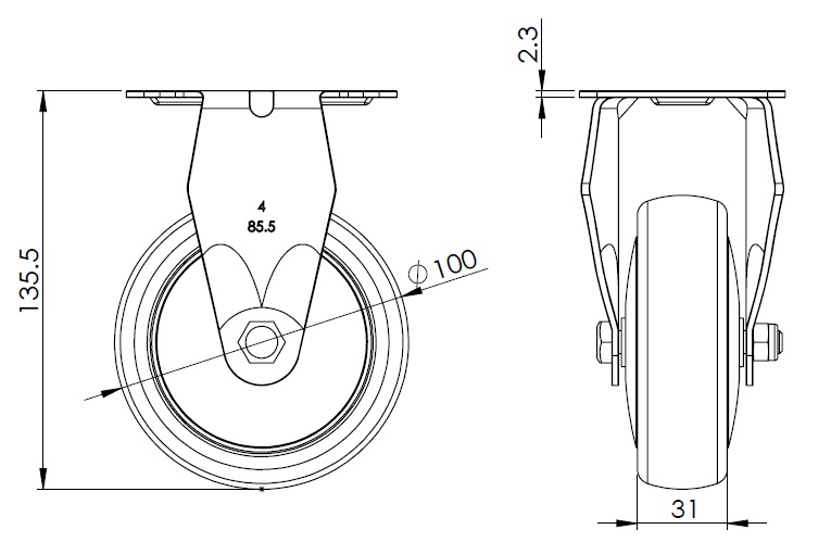 | PPR輪 輪徑 × 輪寬 100 x 31mm |