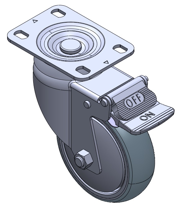 | 配有(180°)定向活動式腳輪,底板鉚合沖壓腳架—高級孔 表面鍍鋅,底板式(3T)安裝裝置 耐衝擊聚丙烯輪芯,熱塑性彈性體(TPR)輪面 深灰色,輪子軸承—精密滾珠。 |