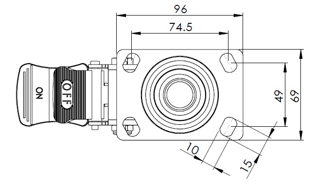 | 配有雙煞式,鎖定系統的腳輪。底板鉚合沖壓腳架—斜孔 表面鍍鋅,底板式安裝裝置 耐衝擊聚丙烯輪芯,熱塑性彈性體(TPR)輪面 深灰色,輪子軸承—精密滾珠。 |