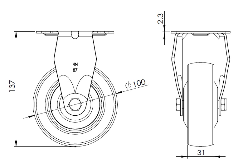 | 橡膠輪 輪徑 × 輪寬 100 x 31mm |