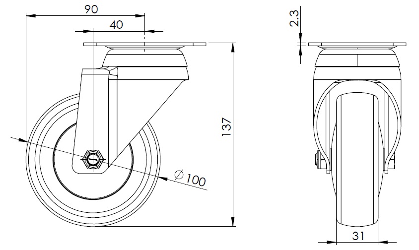 | PPR輪(S) 輪徑 × 輪寬 100 x 31mm |